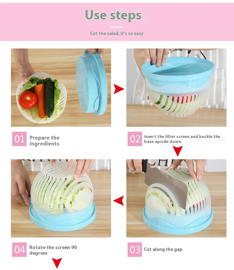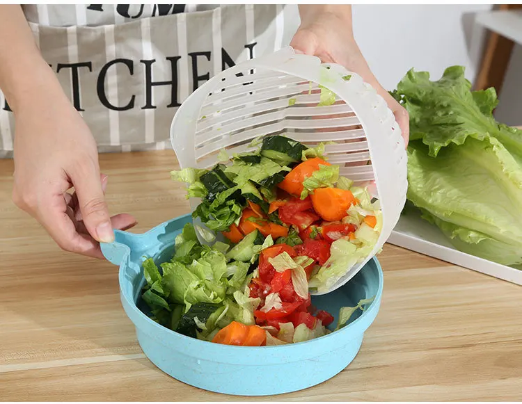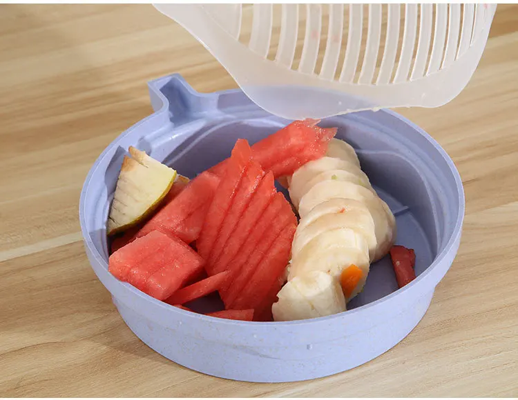 Creative Multifunctional Plastic Fruit and Vegetable Divider Kitchen Tools Salad Bowl Cutter Lazy Cutting Bowl