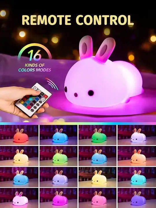 Rabbit LED Night Light Silicone Animal Cartoon Dimmable Lamp USB Rechargeable For Children Kids Baby Gift Bedside Bedroom